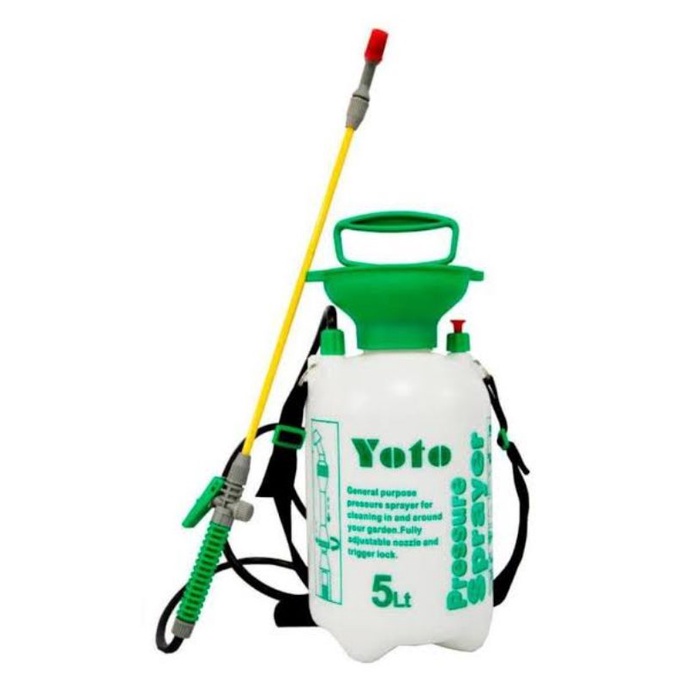 Sprayer 5 Liter Spesifikasi:Kapasitas Tangki : 5 LiterBerat Bersih : 1.5 KgBerat Dimensi : 3 KgTekanan Maxsimal : 5 kg/cm2Tekanan Operasi : 3 kg/cm2- Cara Pakai : Slempang/Gendong/Pundak- Cara Kerja : Di pompa atasnya- Bonus Sparepart cadangan didalamnya.- Bahan kuat terbuat dari plastik PVC.- Ada pengatur tekanannya, jangan kuatir tekanan yang dipompa akan membuat tangki meledak/pecah.- Tutup berbentuk corong memudahkan pengisian kedalamnya tanpa tumpah.- Aplikasi : Untuk menyemprot pestisida, Herbisida dan Pupuk pada Tanaman dsb.#tangki #tangkisemprot #sprayertangki #tangkisprayer #sprayertanaman #sprayersemprotan #tangki8liter #sprayer5l