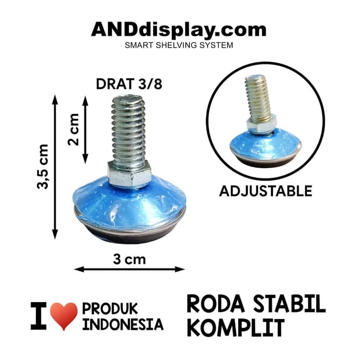 RODA STABIL UKURAN DRAT 3/8PANJANG DRAT 2CM DIAMETER KAKI STABIL 3CM / 30MM TINGGI KAKI STABIL