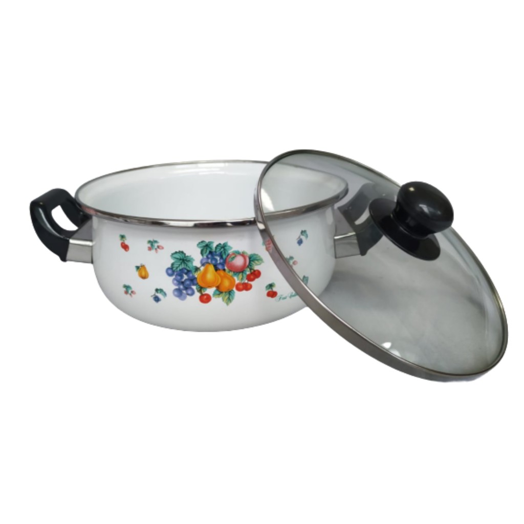 Dutch Oven ukuran 20cm dengan motif cantikBerbahan enamel dan dengan tutup kaca tempered, berkualitas export, knob dan handle yang tahan panasUntuk merebus mieUntuk memasak sayurUntuk memasak semurUntuk memasak buburDan makanan lainnyaPengiriman dapat dilakukan melalui kurir/ekspedisi sesuai pembeli pilih, dimana pihak ekspedisi yang tersedia adalah diluar kebijaksanaan usaha kami, sehingga setiap pengiriman apabila terjadi kerusakan bukan tanggung jawab kami. Kami selalu ada pengecekan akhir sebelum barang di pac