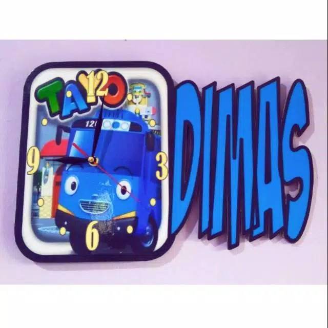 Name: Jam Dinding Nama Karakter Kartun Tayo Hadiah Gift Kado Custom Ulang Tahun Ultah Wisuda Unik