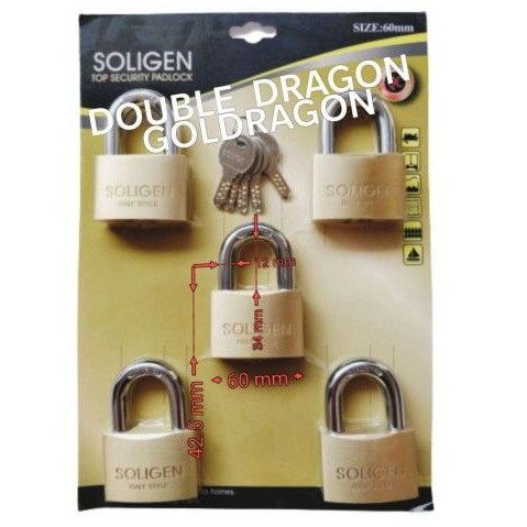 Gembok Kuningan Computer Masterkey - Merk : Soligen- Ukuran : 60 mm x 5 pcs- Anak Kunci : 5 pcs MasterkeyAnak Kunci Masterkey untuk buka 5 pcs g