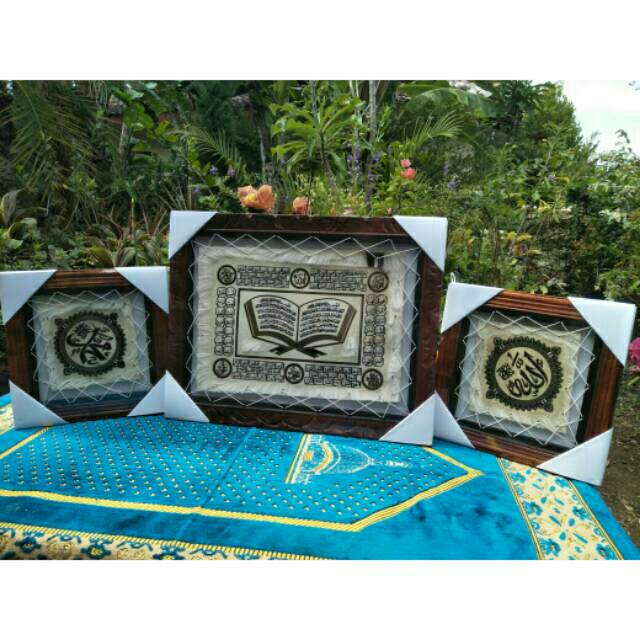 Produsen Perlengkapan di Kepulauan Seribu Kaligrafi Kulit Kambing Satu Paket Isi 3pcs Allah Muhammad Kitab dari Pajangan Hiasan Dinding Kab. Boyolali