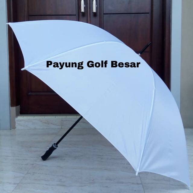 #PayunggolfPayung golf besarPutih polosBahan polyster Double rangka 16jrDiameter 130cmPanjang payung 98cmManual buka di dorong ke