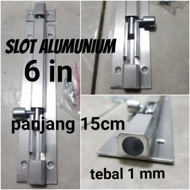 slot /grendel 6in pintu berbahan alumunium tebal 1mm. kualitas lebih awet dan anti karat.panjang slot 15cm. sudah termasuk se