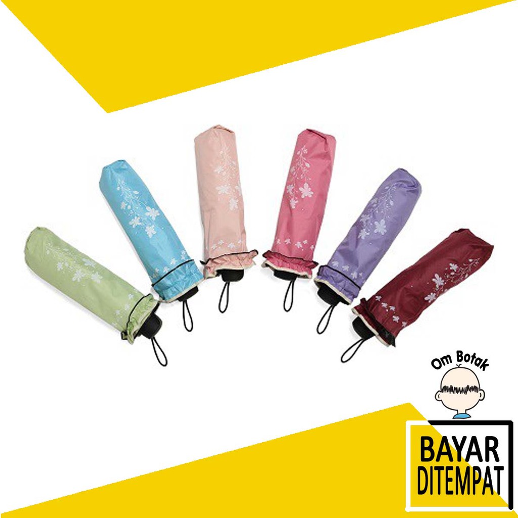 Ready: Hijau, Biru, Krem, Pink, Ungu dan Maroonada lapisan hitam anti UV Harap info warna alternatif yang dipilih. Beda dengan payung abal-abal yang biasa dapat ditemukan di mana2. Di Om Botak, kamu dapat menemukan payung yang fashionable tapi dengan harga ekonomis. Mengapa harus beli payung murah tapi gampang rusak? Dengan besi yang cukup kuat dan model yang cantik, kamu tidak akan menyesal membeli payung di Om Botak. Botak memang berpengalaman :) Payung lipat ini sangat praktis dan fashionable untuk digunakan. Spesifikasi: + Kerangka: Besi Kokoh + Ukuran panjang : 25 cm (kondisi dilipat) + Ukuran panjang : 68 cm (kondisi dibuka) + Ukuran Diameter : 97 cm (kondisi dibuka) + Gagang: Besi