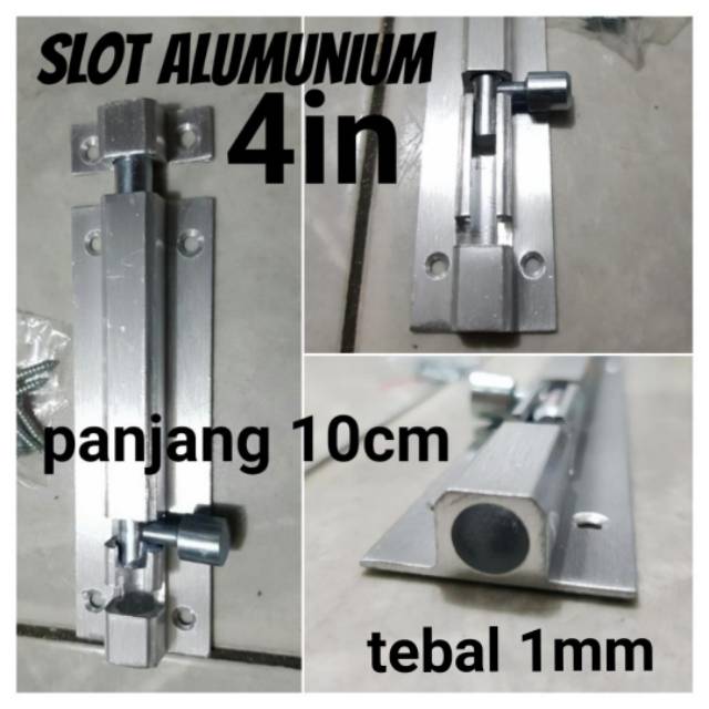 slot /grendel 4in pintu berbahan alumunium tebal 1mm. kualitas lebih awet dan anti karat.panjang slot 10cm. sudah termasuk se
