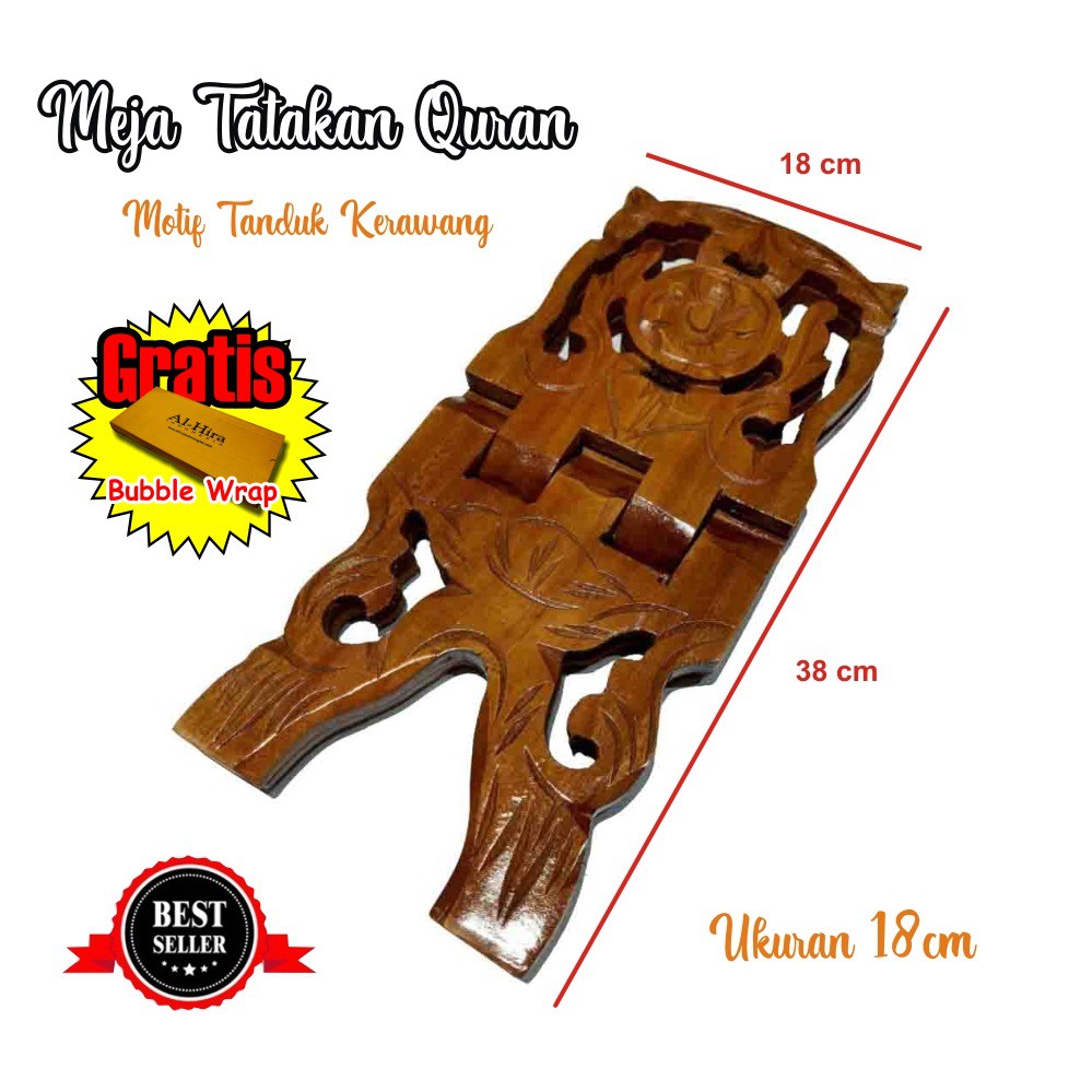 Name: Rekal Tatakan Dudukan Al Quran Kayu Jati Campuran Motif Ukiran Ukuran 18 Cm