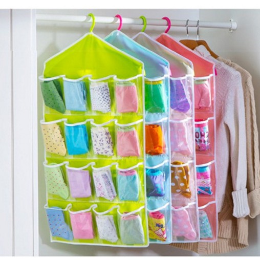 READY : PinkhijaubiruWanita suka koleksi aneka model dan warna celana dalam. Namun seringkali koleksi celana dalamnya numpuk atau berserakan di lemari, malu kan jika dilihat tamu.Dengan Korean underwear pouch, celana dalam jadi tersimpan rapi dan mudah diambil saat hendak dipakai.Pouch terdiri dari 16 sekat transparan, tiap sekat dapat di isi 3-4 pcs celana dalam. Pouch dapat digantung ke hanger, memudahkan untuk digantung di dalam lemari. Bagian atas terdapat lobang untuk hanger.Selain untuk tempat panties, pouch juga dapat digunakan untuk tempat menyimpan aksesoris. Dengan sekat yang cukup banyak, bisa diisi dengan aneka aksesoris seperti kalung, gelang, anting dan pernak pernik lainnya.Material : Polyesternanti air. Sekat bahan plastik transparanSize : 42 x