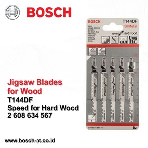 Jigsaw Blades Speed for Hard WoodT 144 DF2 608 634 567SpesifikasiAreas of applicationHardwood, panels [mm]5-50Laminated panels [mm]5-50DetailsMaterialBIMTooth designside set, groundTotal length [mm]100.0Tooth spacing [mm]4-5.2Areas of applicationHardwood and softwood (5-50 mm), all types of panels, including lami