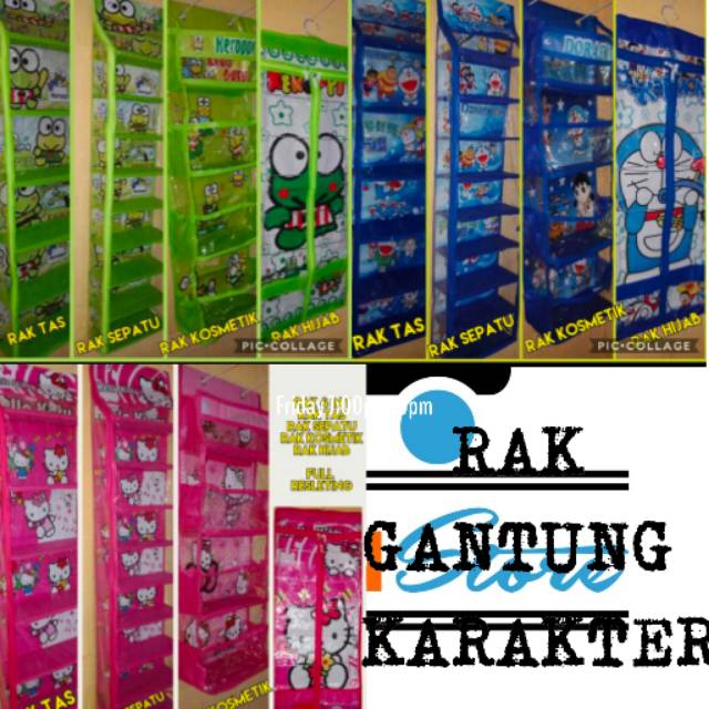 RAK SET 4 IN 1Terdiri dari:Rak tasRak sepatuRak hijabRak kosmetikRAK SET 3 IN 1terdiri dari:Rak tasRak sepatuRak hijab*Rak sepatu gantung 9 susun uk 145×30(pakai RESLETING)*Rak tas gantung 5 susun uk 145×40 (pakai RESLETING)*Rak hijab gantung didalamnya terdapat hanger besi(pakai RESLETING)*Rak kosmetik 4 susun ukuran kecil (tidak pakai RESLETING) Tersedia karakter:-doraemon (biru)-hellokity (pink)-keroppi (hijau) Catatan: Sebelum dikirim, barang di cek terlebih dahulu, supaya tidak ada barang yang rusak. Sebelum order, harap ditanyakan stok terlebih dahulu. Orderan yang masuk sebelum jam 16:00, akan kami kirimkan di hari yang sama (kecuali ada kendala). Terimakasih sudah mampir ditoko kami, salam hangat dan semoga bah