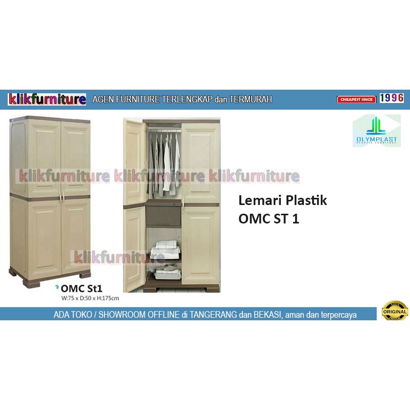 KHUSUS JADETABEK SAJA, DILUAR ITU HUBUNGI KAMI. Pemesanan Pilih Kurir Tersedia Buat Resi Surat Saja, Barang dikirim dirakit kurir toko (ongkos bayar ditempat)Informasi kontak dan toko/showroom offline bisa dilihat di detail akun kami di shopee : https://shopee.co.id/klikfurnitureSALE - Lemari Plastik Olymplast OMC ST1by Olympic FurnitureKualitas bahan terbaikUkuran panjang : 75, lebar 50, tinggi 175 cmWarna tergantung stok yang ada waktu kirim,beli=setujuMohon dibaca :✅KHUSUS wilayah Jakarta, Depok, Tangerang, Bekasi *o Transaksi pilih "Kurir Tersedia" waktu checkout, barang akan dikirim dan dirakit kurir tokoo Ongkir+instalasi oleh kurir kami mulai dari Rp 0 sd Rp 100.000,-(bayar ditempat, nego tergantung lokasi) / pengiriman(kalau beli beberapa item tetap dihitung sama).Total pembelian diatas 5 Juta BEBAS/FREE , tidak dikenakan biaya tambahan.✅Untuk diluar JADETABEKo Bisa menggunakan jasa cargo, ongkos dibayar pembeli, barang dirakit sendiri, tidak bisa klaim ke seller untuk kerusakan dijalan ataupun kesalahan pemasangan.o Hubungi kami terlebih dahulu via chat (berat asli produk 49kg)#lemariplastik #omcst1 #olymplast#lemariolymplast #juallemariplastik #hargalemariplastik------ klikfurniture : agen resmi produk furniture termurah sejak 1996 ------Diskusi dan Chat akan direply Senin-Sabtu Jam 08.00 - 17.30 (selain tanggal merah).Terima