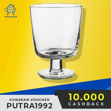 Dimensi produkTinggi: 12 cmVolume: 30 clFitur utama- Juga sesuai untuk minuman panas.- Dapat ditumpuk sehingga hemat ruang kabinet.- Terbuat dari kaca tempered yang membuat gelas anggur tahan lama dan tahan pakai.- Gelas memiliki bentuk yang lebar memungkinkan digunakan sebagai mangkuk untuk menyajikan dessert yang nikmat.Cara perawatanAman untuk mesin cuci piring.Dekripsi produk & ukuranKaca Tem