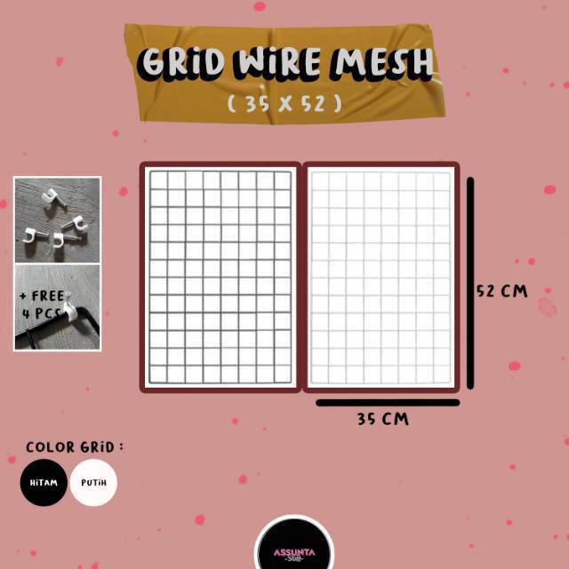 Paling Murah Perlengkapan di Kota Probolinggo [as] Grid Mesh Wire 35x52 / Hijang / Hiasan Dinding Persegi Panjang dari Tidak Ada Merek Kab. Bogor
