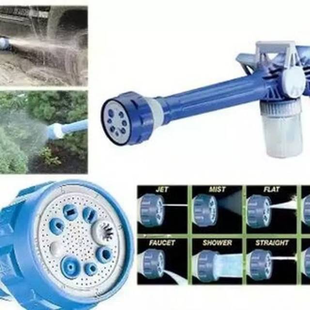 #EH088Water Cannon Jet ( Penyemprot Mobil & Motor)Kini Hadir Jet Water Cannon Dengan 8 Ez Jet Spray Setting Cocok Untuk Menyiram Kebun/Taman Bunga (Great For Garden) Dan Blast Away Those Dirty Jobs.Alat Ini Dilengkapan Dengan Soap Dispenser Water Cannon Multi-Function Spray Gun With Built-In Soap Dispenser.8 Spray Setting Bisa Dilihat Di Picture:1.Jet2.Mist3.Flat4•Fan5.Faucet6.Shower7.Straight8.Angle.Kalau Kamu Mencuci Motor Atau Kendaraan Pastinya Ingin Bersih Dan Bisa Menjangkau Seluruh Bagian Kendaraan Dengan Arus Air Yang Sangat Deras, Dengan EZ Water Canon Semuanya Bisa..Spray Semprotan Air Dengan 8 Jenis Model Semprotan Yang Dapat Diganti Ganti Dengan Memutar Ujung SprayEZ Jet Water Cannon Juga Dilengkapi Dengan Dispenser Tabung Sabun Cair Sehingga Dapat Di Atur Apakah Semprotan Akan Mengeluarkan Air Saja Atau Air Sabun.MultifungsiDengan Ez Jet Water Cannon, Anda Dapat Menyelesaikan Berbagai Pekerjaan Rumah Dengan Mudah. Cukup Sesuaikan Tekanan Airnya Dengan Jenis Pekerjaan Yang Anda Mau. Mulai Dari Mencuci Mobil, Membersihkan Garasi, Mengangkat Lumpur Dan Kotoran Membandel, Menyiram Bunga Hingga Membersihkan Jendela Di Lantai Dua. Tekanan Air Dari Spray Gun Ini Mampu Menjangkau Jarak Yang Jauh. Ez Jet Water Cannon Dapat Dipasangkan Dengan Selang Model Standar Dalam Merek A